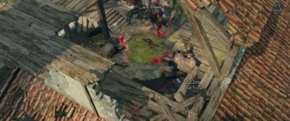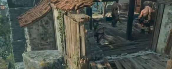 3、玩家在房屋的右侧爬木梯到房顶上与食人魔战斗。