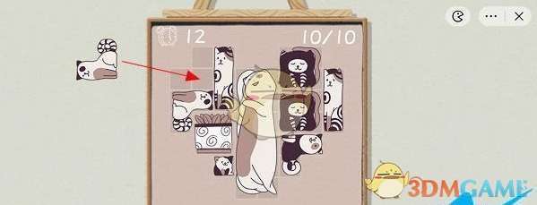 注:点击猫咪道具就可以调整上下左右角度,先调整好角度,再放到拼图里。