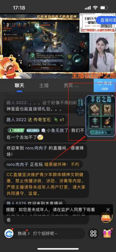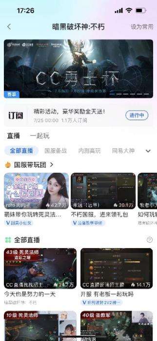 进入暗黑不朽手游专区(如图)随机打开直播间
