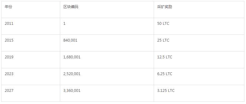 3、和比特币一样,莱特币的设定也是每四年减半。“减半”的全称是“挖矿的奖励降低一半”,这就意味着,减产之后,在相同的时间里,矿工挖矿可以挖到的币越来越少。比特币和莱特币的减半周期都是四年左右,也就是大概每过四年,挖矿的奖励会降低一半。为什么要有“减半”这件事呢?这还用从它们的挖矿机制说起。