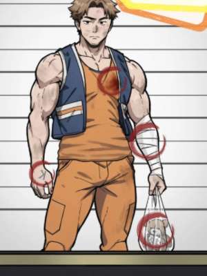 5、下一位嫌疑人身上线索是手上的k字标记、左臂受伤、损毁的小熊玩偶、衣服上的血渍、然后上滑衣服找到绳子;