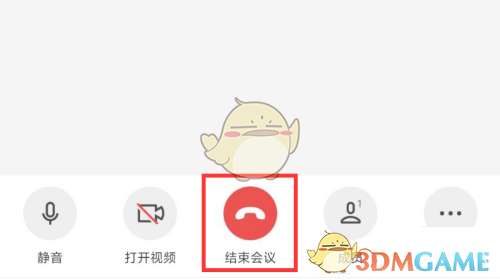 3、会议就开始了,点击底部结束会议就可散会了(如图所示)。