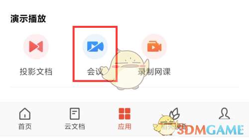1、在WPS Office应用菜单里,点击会议(如图所示)。