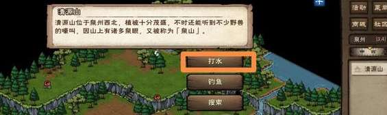 2、然后在虎乳泉旁边点击清源山后选择下方的打水按钮。