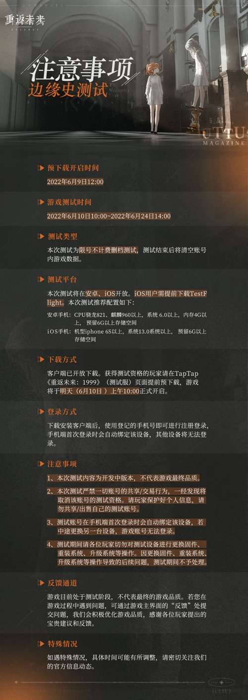 重返未来1999内测预约开启 边缘史测试注意事项一览