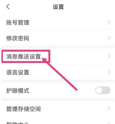 第二步:在【设置】页面,点击【消息推送设置】。