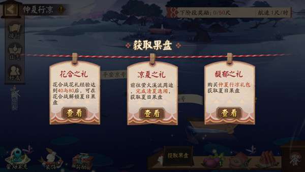 行船途中遇到的式神们会向大人寻求帮助,帮助式神们解决困难将获得夏日果盘。