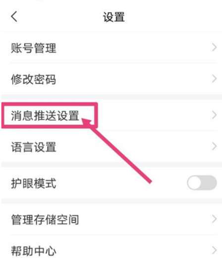 3、进入之后,点击“消息推送设置”(如图所示)。