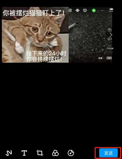 4、选择一个表情包,调整好位置和大小,点击发送即可。