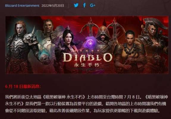 暗黑破坏神不朽国服什么时候上线?暗黑破坏神不朽国服原定计划是在6月23日进行更新,但是近期暴雪中国发布公告将会延期,同时推特也发布公告亚太地区的不朽上线时间将会推迟,下面为大家介绍一下本次延期公告内容。