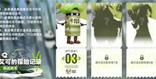 2:然后我们挑战成功之后就会获得对应的奖励,也就是熊猫纪念币了,挑战模式是根据玩家的剧情模式进度解锁的;