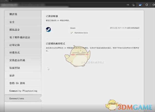 2、在账户页面中点击下方的connections,随后在右侧便可以查看origin平台绑定的账号,刚绑定的账号需要一定的等待时间才能解锁,等到可以解锁时点击解除绑定即可。