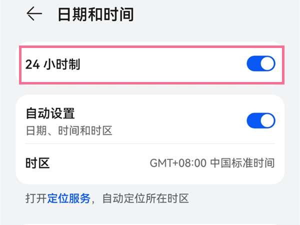 3、打开24小时制右侧开关即可。