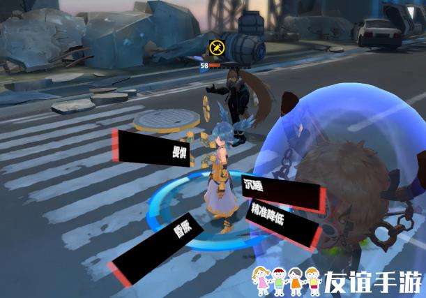 增益状态有攻击提升、生命恢复、护盾等,减益状态有流血、感电、禁疗等等