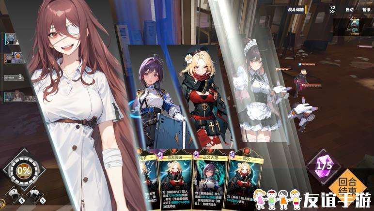 1、这款游戏采用回合制战斗,分我我方回合和敌方回合,每一回合中我方手牌全部打完后,结束回合之后开始敌方回合