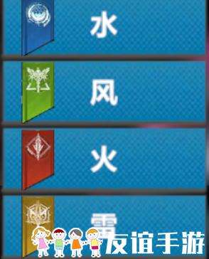 游戏中存在水、风、火、雷4种元素属性