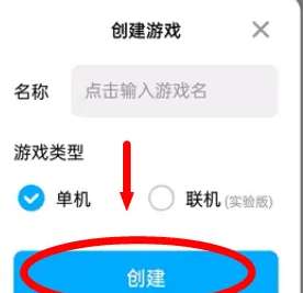 4、随后在创建界面输入需要制作的游戏名称并选择类型,完成后点击下方的创建按钮。