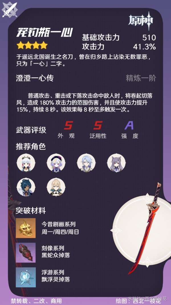 获取途径方面,该武器仅可通过通关枫原万叶的传说任务:枫红之章获取。