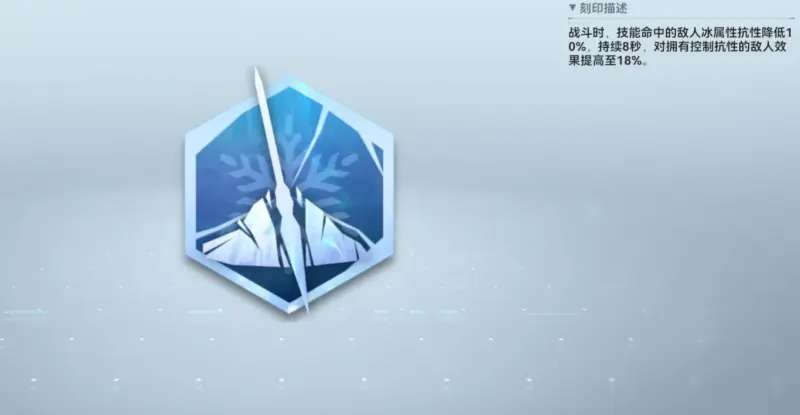 不过这边还有一个比较重要的点,就是关于新的冰刻印【冰海的寒锋】与【夙夜的冰渊】之间的选择。在“丝卡蒂”携带专属后可以享受到多倍的冰属性减抗加成,单从个人方面考虑的话【冰海的寒锋】收益会更高一些,但由于【冰海的寒锋】交给队伍其他角色时“丝卡蒂”也可以享受到套装效果,因而综合来看【夙夜的冰渊】的优先级会更高一些。