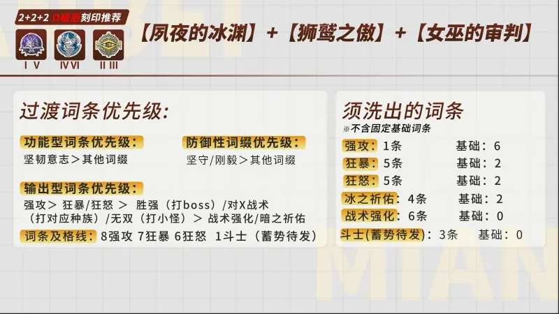 “蓄势待发”以及“斗士”这两个词条,需要根据自己主玩的形态进行选择,如果主玩“巡航模式”就需要选择“斗士”词条,反之则选择“蓄势待发”词条。