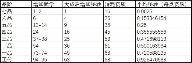 另外,如果你的功法品质太低,也会在占用同样资质的情况下,得到的秘转点更少。