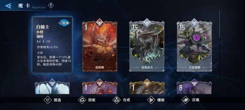 专一化加成:某些魔卡能够加成特定类型的攻击或技能,对于专注某一战斗风格的角色来说,选择相应的魔卡可以事半功倍。