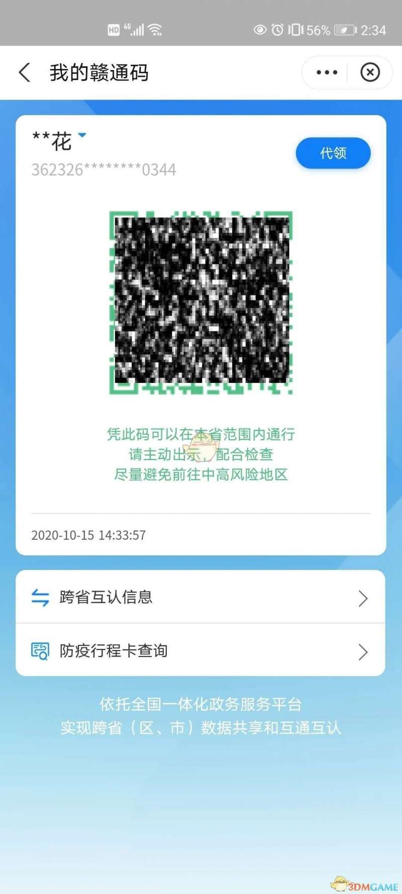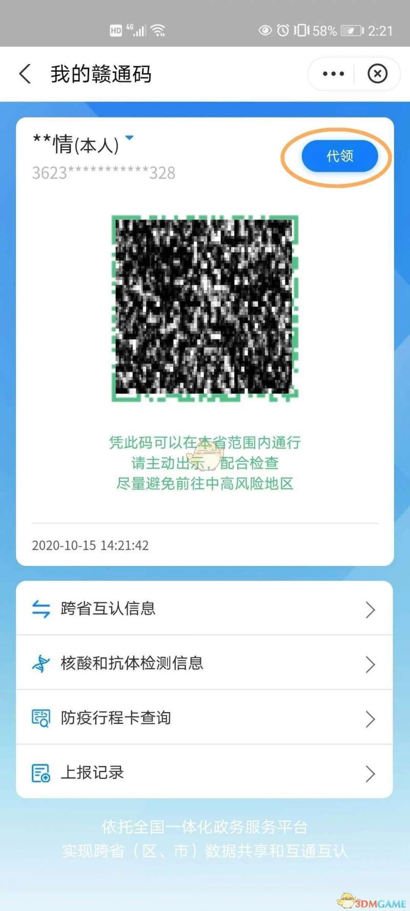 2、点击我的赣通码,选择代领,查看授权信息,点击同意