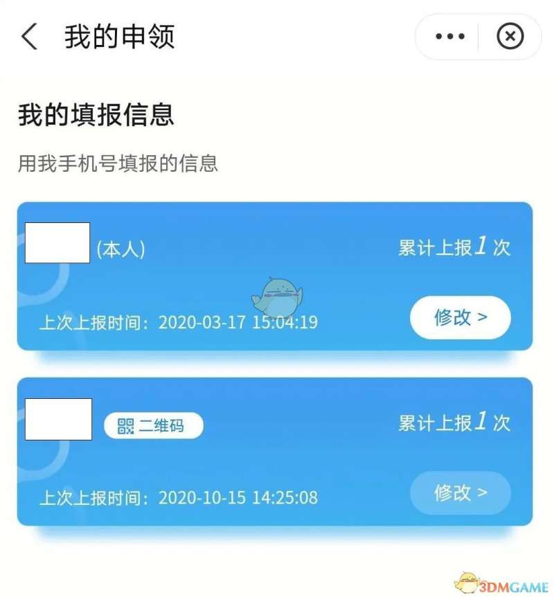 4、在我的填报信息可看到本人和代领对象的信息。点击二维码,出示给相关工作人员