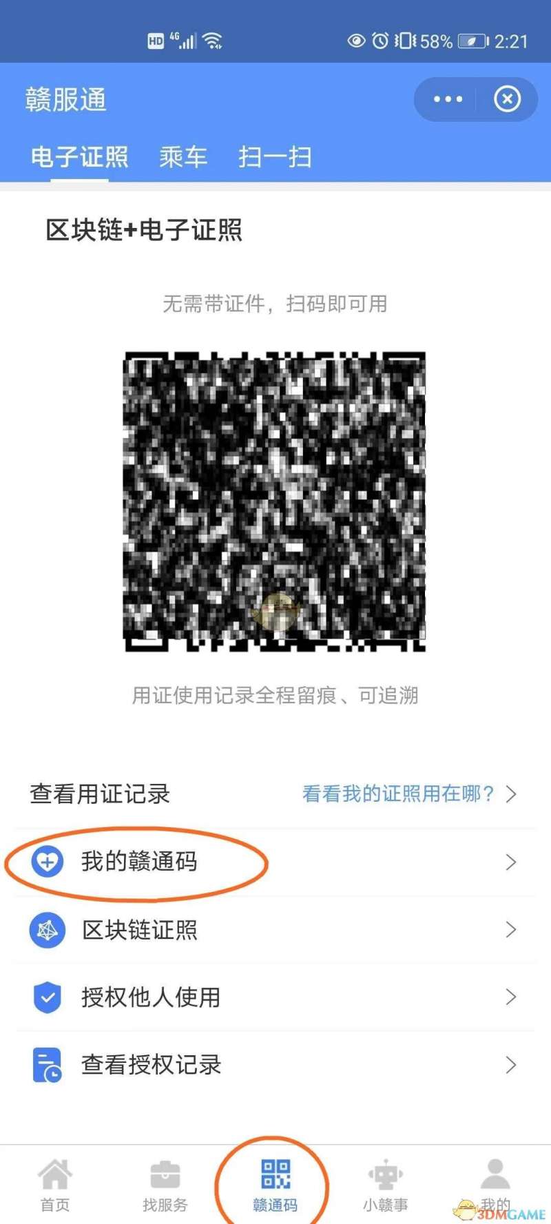 1、打开赣服通,点击赣通码,选择我的赣通码