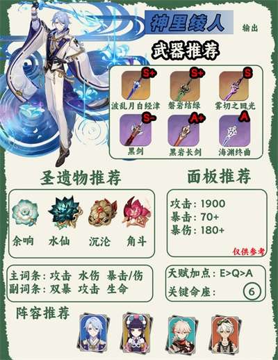 T1.5:刻晴、赛诺、荒泷一斗、魈、流浪者、神里绫华