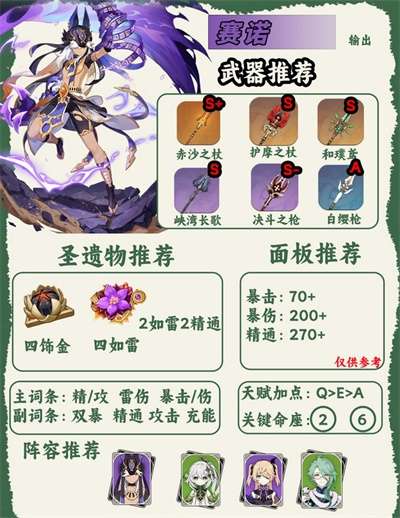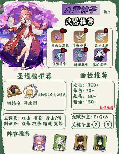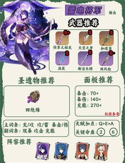 T0:纳西妲、芙宁娜、夜兰、雷电将军