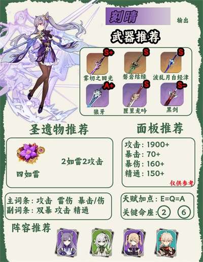 (1)速切爆发:战技E或元素爆发Q的倍率很高,能直接打出很高的伤害;