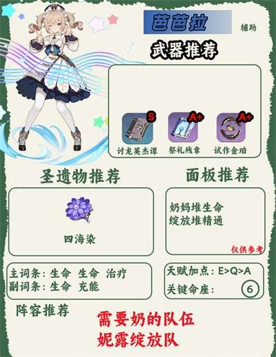 T2:夏沃蕾、迪奥娜、迪希亚、琴、芭芭拉、早柚