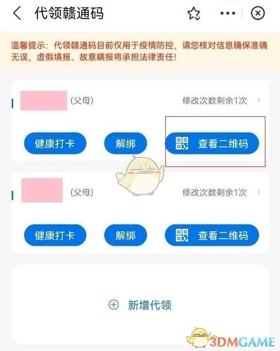 3、返回首页,即可查看代领人也就是家人的赣通码。
