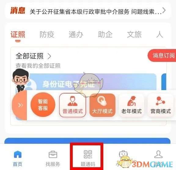 1、进入“赣服通”,首页点击赣通码,选择代领赣通码。