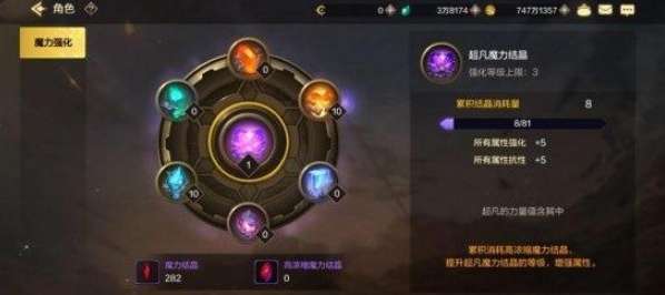 各项数值累积一定等级激活“超凡魔力结晶”属性,提升“所有属性强化”和“所有属性抗性”。如图: