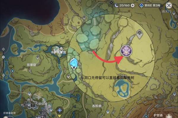 2、顺着山洞走就可以看到掣电树了,和爆炎树的山洞一样,都是没有岔路口的。