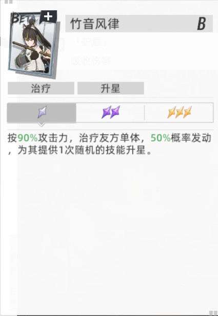B技能奶队友的同时还有概率让他的技能升1星,一般推荐这个技能在3星时使用,产生2点sp的同时,奶的多,概率也成了100%