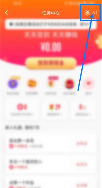 3、接着,进入任务中心,找到右上角“等级”图标。
