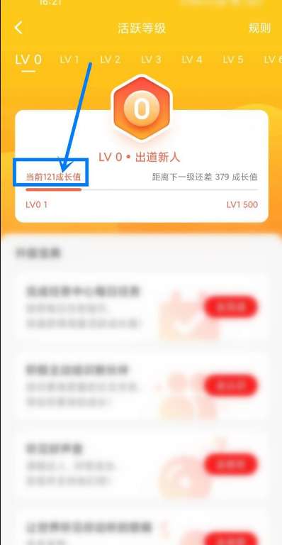 4、最后,在我的等级界面,你就可以看到个人的成长值了。