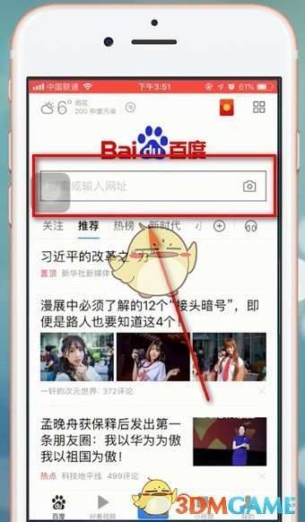 1、打开手机百度app,在搜索栏中输入【百度风云榜】就能看到最新的热点资讯了,