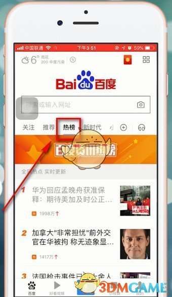 2、另外百度首页还有【热榜】可以查看当天的热点资讯哦。