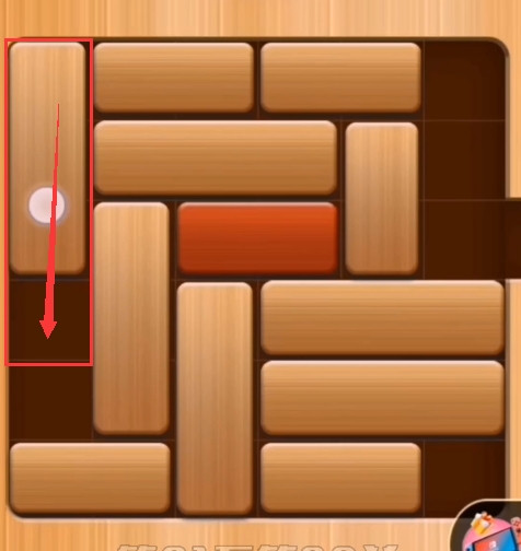 第一步:将第一列的竖立的积木往下推(如图:)