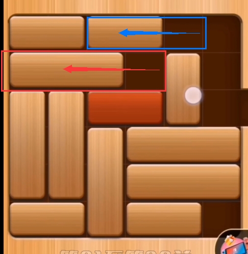 第三步:将第二排的横向的积木往左边推,并把第一排另一个横向的积木也向左边推(如图:)