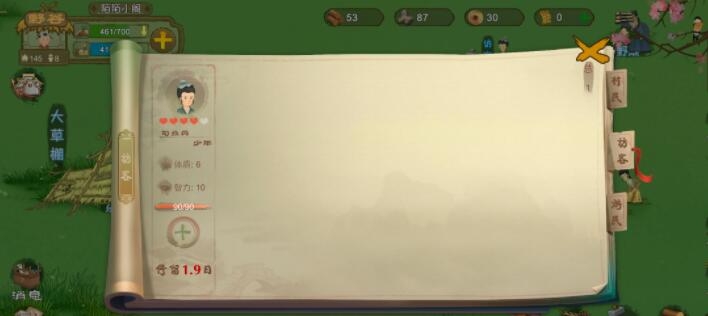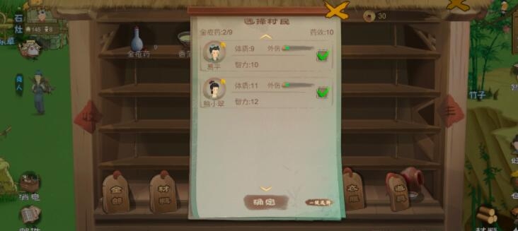 然后来商人的话卖紫桃,买的话就买金疮药和香蒲汤这俩个药全都要买完(不要问我为什么这么多紫桃,家宴一出来食物严重不够,俩个人采食物不够,我建议三个人采野果,俩个人采野菜等食物回复上来就不用这么多人了);