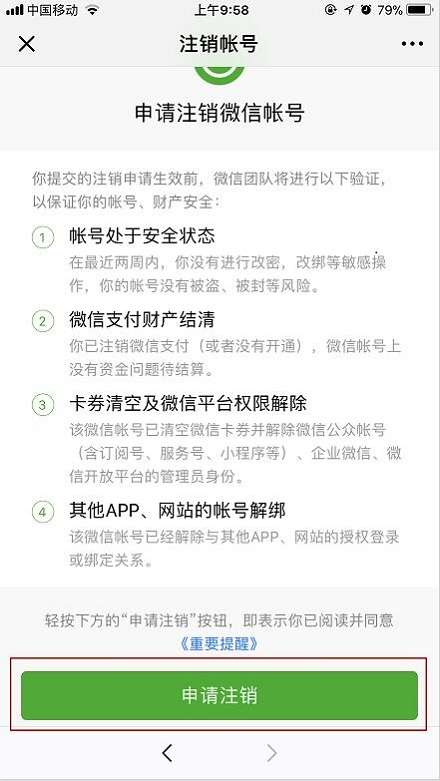 5、在注销前,请仔细阅读页面上的信息,确保了解注销账号的后果。确认无误后,点击【申请注销】,即可开始注销流程。