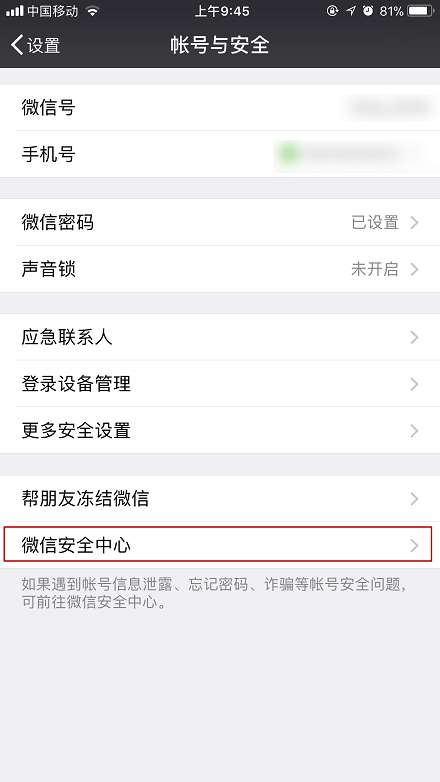 3、紧接着,点击【微信安全中心】,这里集中了微信账号的各种安全设置与操作。