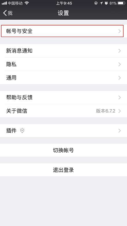 2、在设置界面中,找到并点击【帐号与安全】这一选项,这是管理微信账号安全的关键入口。