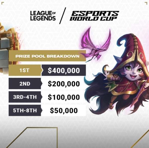 3、《英雄联盟》项目奖金池100万美元,其中冠军40万美元、亚军20万美元、三四名10万美元(当前约72.5万元人民币)、五到八名5万美元。