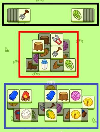 2、同层可以三消的就先消除同层,没有的话就需要查看下一层的物品,然后将需要的物品的上方的道具放置到槽中获得下方的道具。